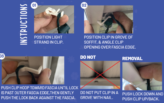 Patent Pending, USA MADE Kringles Clips Fascia Clip Distributed by Magna Gen Inc. 16350 Cedar Springs Ave, Sand Lake, Mi 49343